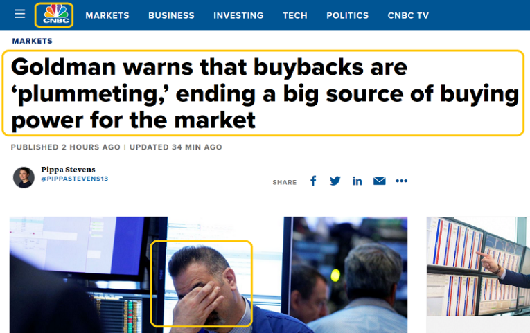 Goldman analysts note a very concerning drop in stock buybacks.