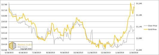 It’s also exactly what Monetary Metals has been calling for. Last week, we said the gold fundamental was $1,450 and the silver fundamental was $14.90 (i.e. a fundamental value for the ratio over 97 last week). This week, the ratio moved up, and it’s now 1.3 points closer. In other words, silver got cheaper when measured in gold terms.
