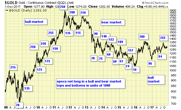 COT data favors overall higher gold prices.