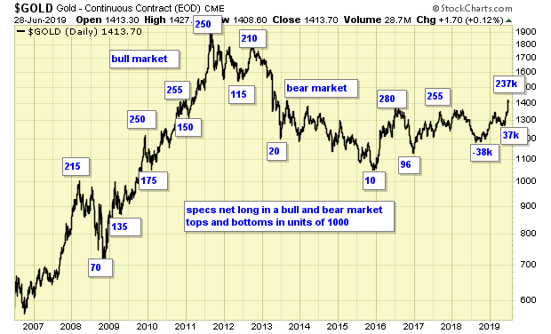 COT data is supportive for overall higher gold prices but now approaching levels of previous tops.
