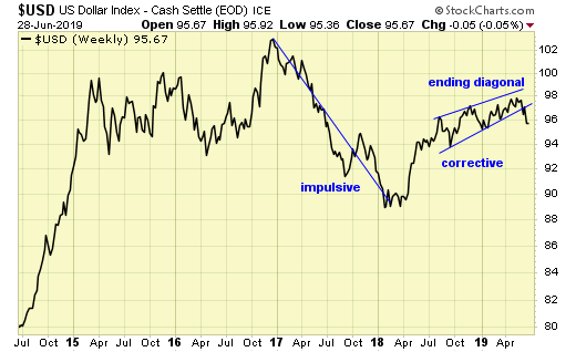 At the same time, USD has broken support to confirm the ending diagonal corrective pattern.