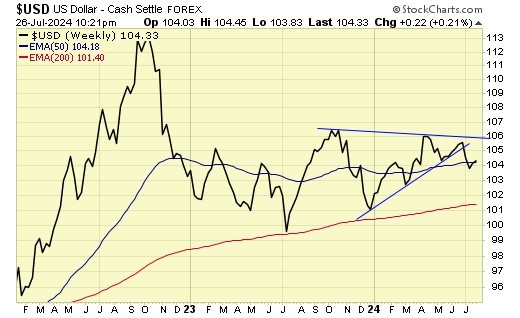 Trend is up for gold and gold stocks, down for the USD.