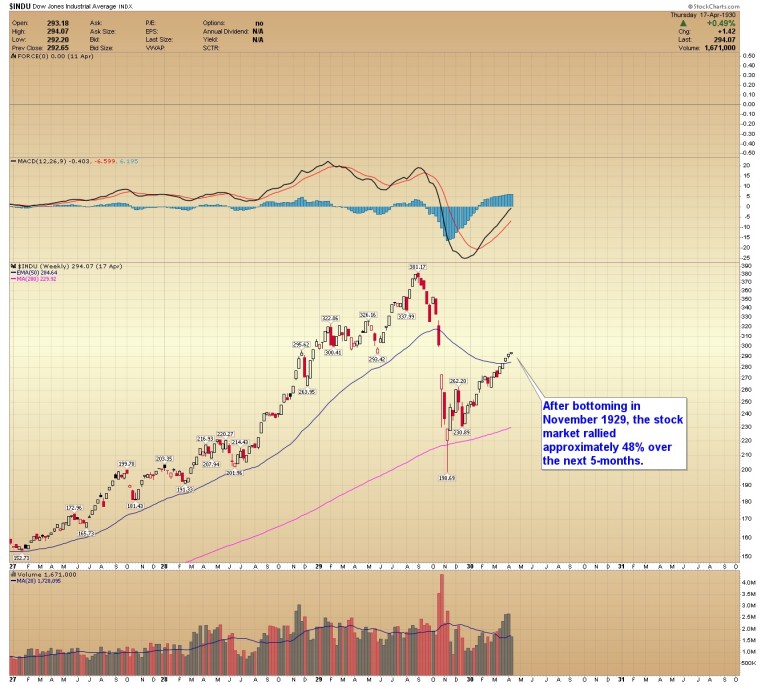 Phase 2) After bottoming in November 1929, the stock market rallied approximately 48% over the next 5-months.