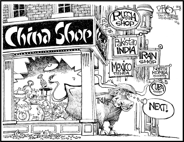 One could argue that President Trump will shake things up and in rejecting the status quo and longstanding norms both domestically and internationally, his world order would appear to trump the postwar blueprint that hugely benefitted the United States. In serving American interests, disputes were generally handled with a mutually of interest or common ground. While Trump’s appeal is the chaos that he threatens to bring, that chaos in the form of a protectionist trade agenda could only undermine America’s geopolitical influence, particularly at a time when America’s ability to remain the world’s most powerful economy is weakened by a balance sheet in shambles. And the long standing network of alliances, once dependant upon on trade, trust and pocketbook issues is now threatened. Trump’s threats are as important as money, and bullying allies or trading partners won’t be as easy as terrorizing Washington’s mandarins or auto companies.