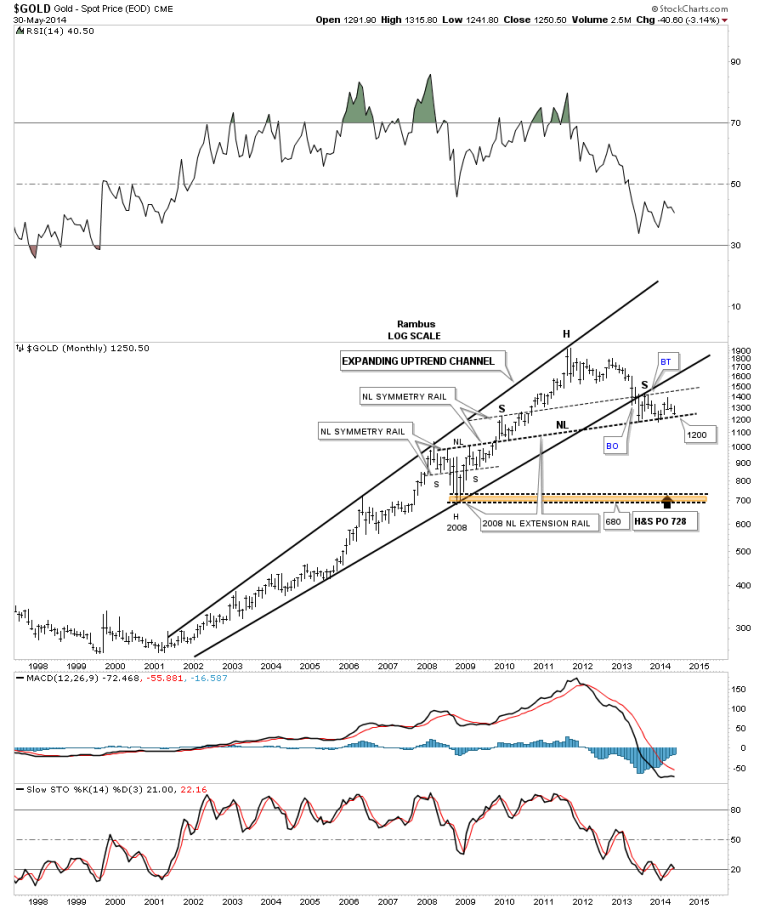 I know how hard it is for a lot of folks to look at this last chart for gold that is showing a potential massive H&S top building out. My job is to interpret the Chartology with an unbiased opinion nothing more nothing less. I wish we were looking at a massive inverse H&S bottom like in 2000 but that isn’t the case. We’ve been following this potential H&S top for eight months or so at Rambus Chartology waiting patiently for this pattern to mature. It looks like 1200 is going to be the key area of support to watch even though 1180 has the previous two lows. Stay tuned as all these charts above are painting a rather negative picture for gold that seems to be getting weaker not stronger vs many different sectors of the markets. All the best…Rambus