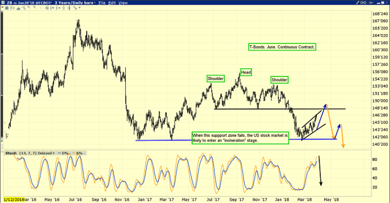 This is the horrifying T-bond chart. On a day that the Dow Industrials fell more than 700 points at one point, the T-bond could barely rally at all.