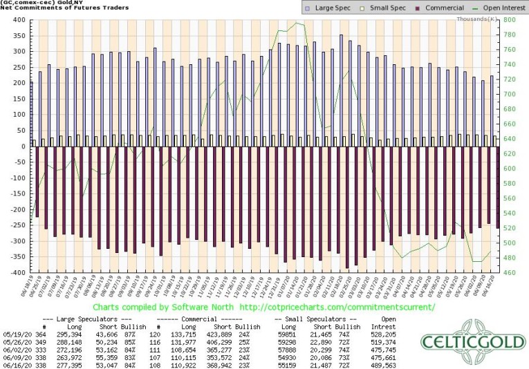 Commitments of Traders for Gold as of June 22nd, 2020. Source: CoT Price Charts