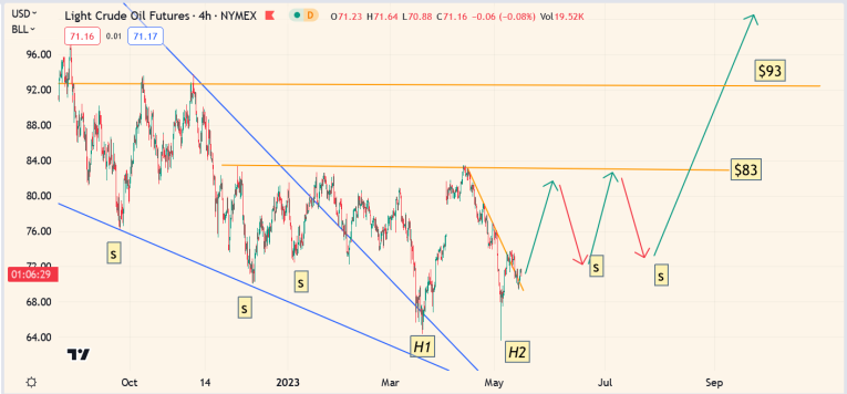 Interestingly, the Goldman Q4 forecast for $100 oil fits with my technical base pattern and projected breakout.