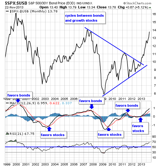 Our equity/bond model - This long term reliable investing model provides investors with simple decision making in the markets:
