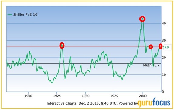 The Shiller P/E index, also called as the CAPE, is constructed by Robert Shiller the famous Nobel Laureate in Economics. It is close to its 2007 levels and is 50% above its long-term average. Combining the readings of the CAPE with Valuation confidence index (a sentiment index), Shiller has warned of similarity in readings leading to the 2000 stock market bubble burst. He agrees that forecasting the short-term is difficult as the market behaves differently when the rally is led by the easy money policy of the Central Banks.