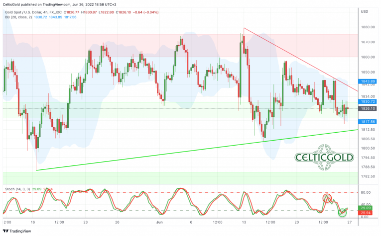Gold in US-Dollars, 4-hour chart as of June 26th, 2022. Source: Tradingview