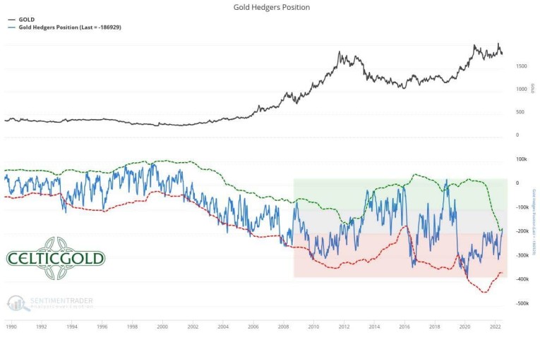 Commitments of Traders for Gold as of June 26th, 2022. Source: Sentimentrader