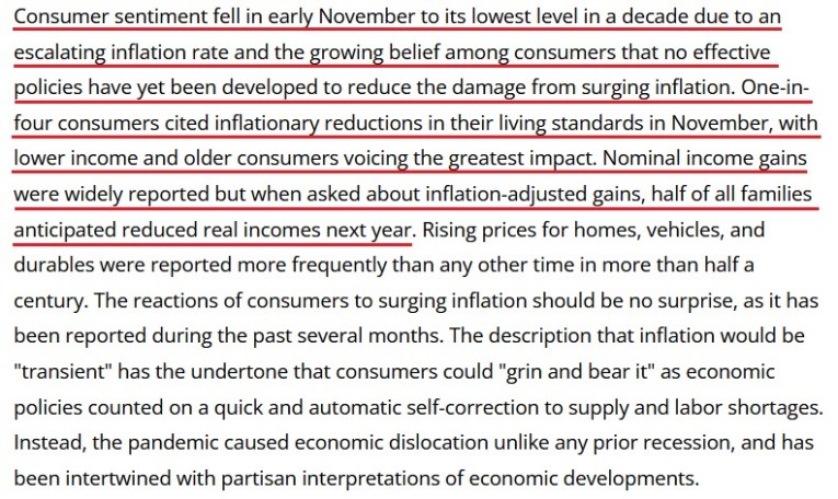 The University of Michigan released its Consumer Sentiment Index on Nov. 12. And with the index hitting a 10-year low, it’s no coincidence that The White House (and soon likely the Fed) has made inflation Public Enemy No. 1.