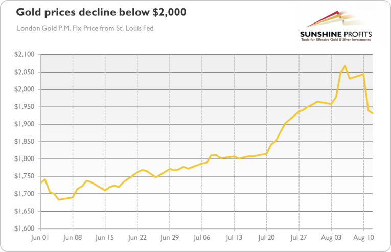 However, the yellow metal is not strictly linked to the number of new cases of Covid-19. Actually, its recent rally occurred at the turn of July and August, when the epidemiological situation already started improving. And gold did not enter the bear market when the U.S. seemed to strengthen after the first wave of infections.