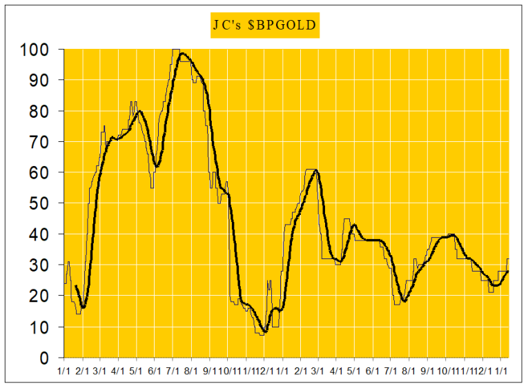 Gold sector cycle is up suggesting that the multi month correction is complete.