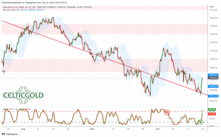 Gold in US-Dollar, 4-hour chart as of October 22nd, 2022. Source: Tradingview