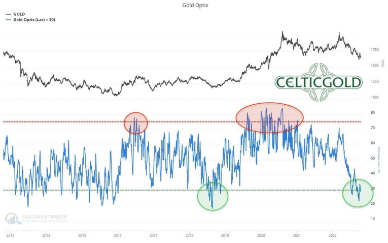 Sentiment Optix for Gold as of October 19, 2022. Source: Sentimentrader
