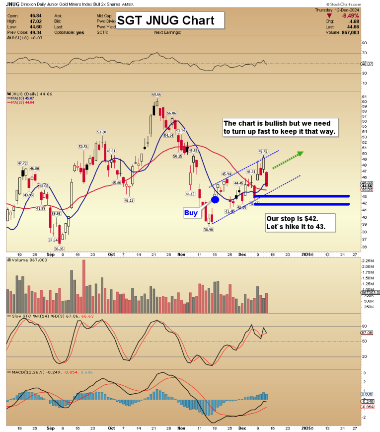 At my SGT Super Gold Trader newsletter, Traders make plays on NUGT, DUST, JNUG, UCO, and other key leveraged ETFs, as well as some individual stocks. Tight stoplosses on every trade keep drawdowns in check. The SGT proprietary signals are the core of the service. At $499/yr, subs love the action, and I have a half price $249/14mth special offer this week! If you want the offer, please send me an email or click this link and I’ll make it happen. Thanks!