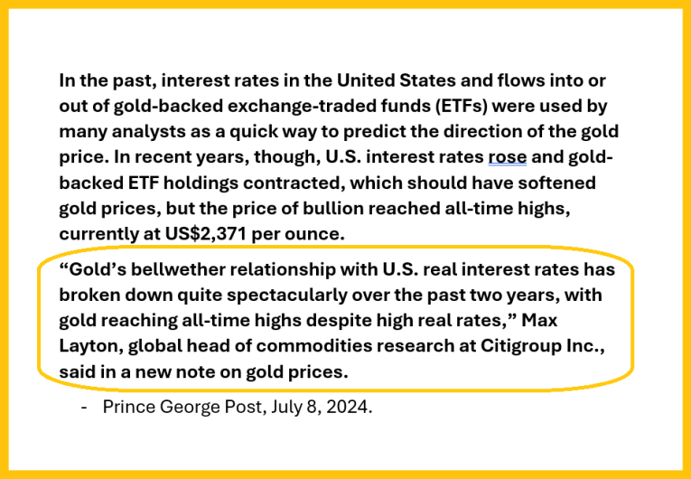 Suddenly gold soars from $1500 to $2400 and does it while interest rates surge!