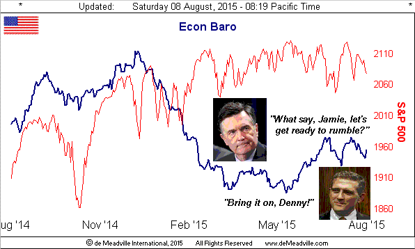 Which is a fitting segué to once again pairing up the interest rate intentions of the Federal Open Market Committee with the state of our Economic Barometer. You no doubt read this past week of Federal Reserve Bank of Atlanta President Dennis Lockhart stating that "...there is a high bar right now to not acting...", this on the heels of St. Louis Fed President James Bullard having commented that “...we are in good shape...”. Here's the shape of the Econ Baro: