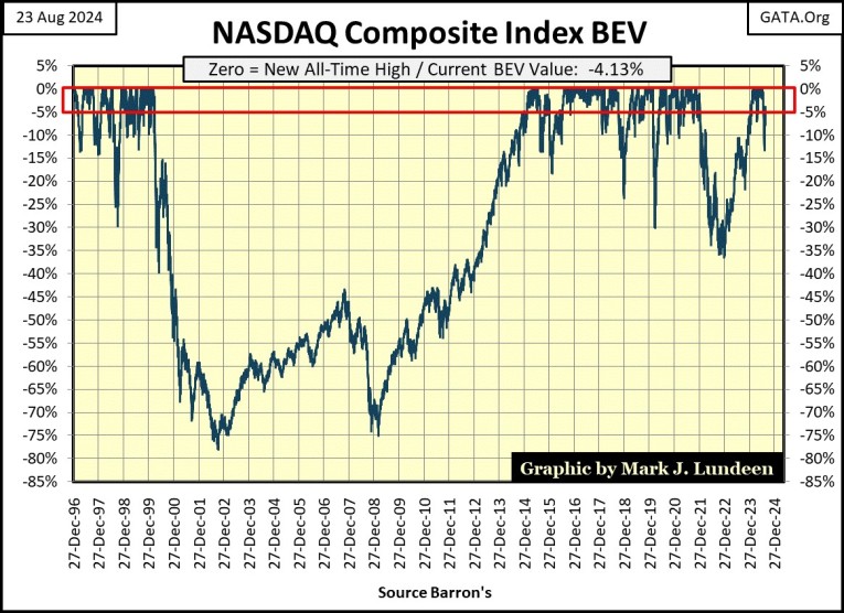 Since 1980, it not just the Dow Jones seeing a super-abundance of BEV Zeros. Below is the NASDAQ Composite indexes’ BEV chart.