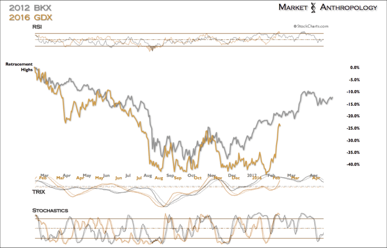 The precious metals miners, who had replicated their downside moves over the past several years, have begun to break out of the repeating pattern.