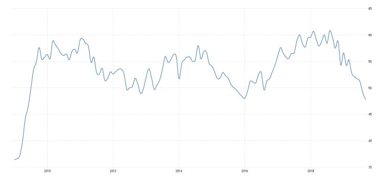 Chart 1: The US ISM Manufacturing PMI from 2009 to 2019