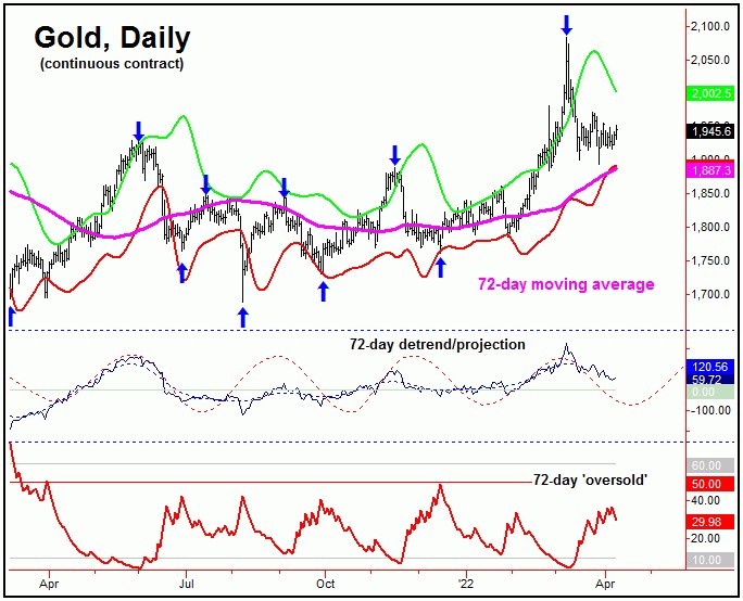 In terms of time, as mentioned in prior articles, this 72-day cycle had been seen as pushing lower into the mid-April region, plus or minus - where its next bottom should try and form.