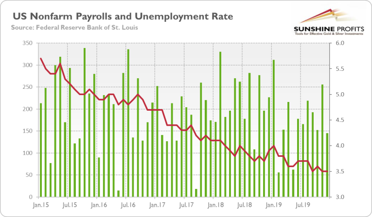 But the U.S. labor market is still doing relatively well, which – combined with the lack of strong wage pressure – should make the Fed to keep the interest rates unchanged in the foreseeable future. The fact that the U.S. central bank has no reason to hike the federal funds rate is positive for the gold prices. And indeed, the yellow metal rose on Friday, and weaker-than-expected U.S. jobs data could help here.