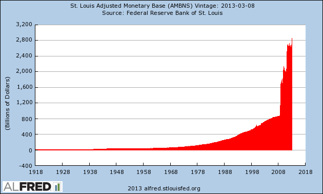 Additionally, the Monetary Base has been pumped up by the Fed – as the following two charts demonstrate.