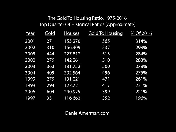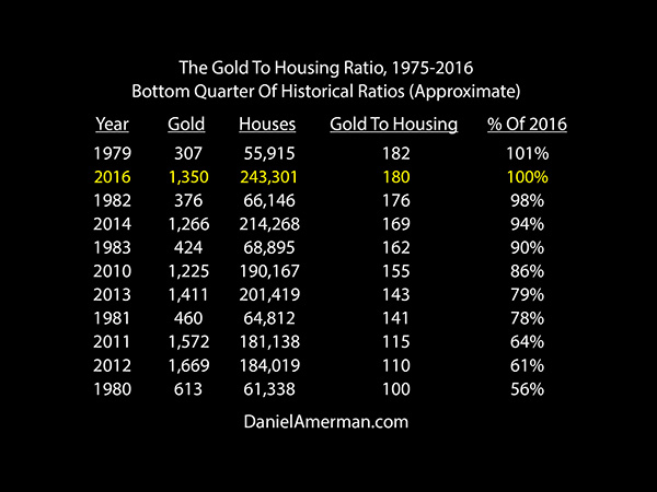The Gold to Housing ratio is a quite useful measure for evaluating relative values between real estate and gold, and also has an interesting historical track record for identifying turning points in long-term gold price trends. In light of the surge in gold prices in 2016, and the continuing strength in housing – it is worthwhile revisiting this basic measure, because the results aren't at all what most people likely think they are.
