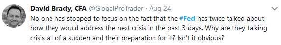 Adding credence to this argument, last week the Fed shared their plans for a return to what I call “stimulus on steroids”, vowing to do “whatever it takes” should a crash occur. They did this not once, but twice: In the FOMC minutes last Wednesday and in Powell’s speech at Jackson Hole on Friday. This confirmed my expectation that the Fed will again ride to the rescue when stocks crash. But more importantly, consider this: