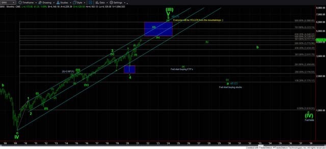 Now, most of you that read my analysis know that I have been a staunch bull, especially after we struck my long-term pullback target in the 2200SPX region last year. In fact, my ideal target for this bull market which began in 2009 is in the 6000SPX region.