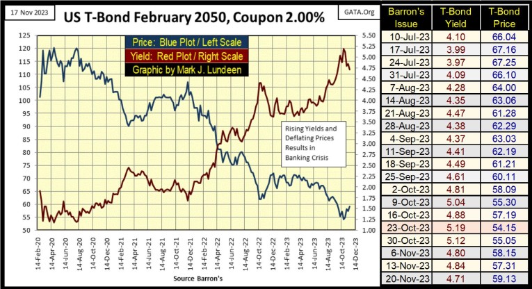 Now let’s look at the yield curve above for the close of this week; the Red Plot above. This inevitable bounce off the bottom of the lows of August 2020 resulted in a massive bear market in bonds. For this 30yr T-Bond issued in February 2020, chart below, these yield increases resulted in a 54.87% decline in market valuation from August 2020 to just last month.