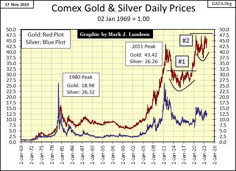 When that rule changes; the current rule placing a 47.5 line-of-death for the gold market seen below, seeing gold rise to an indexed value of 70 would not be unreasonable. Gold rising to $3000 an ounce, would be an indexed value in the chart below of 68.97. Silver at $100 would be an indexed value of 54.05 on this chart.