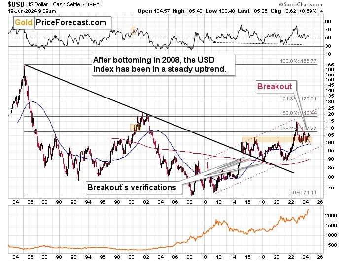 The U.S. dollar is after long-term breakout, and a prolonged verification of this breakout. The breakout took place in 2015 and the consolidation ended in 2022, when the USDX soared above the 2016 and 2020 highs.