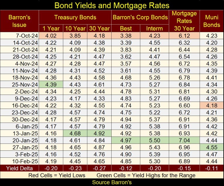 Looking at the bond yields and mortgage rates in the table below, it seems to me, that yields continue trending upwards, with no indication their rise has found a top. Should this trend in rising yields continue, it will result in a big-bear market in the stock market, as precious metal assets continue rising to prices not known today.