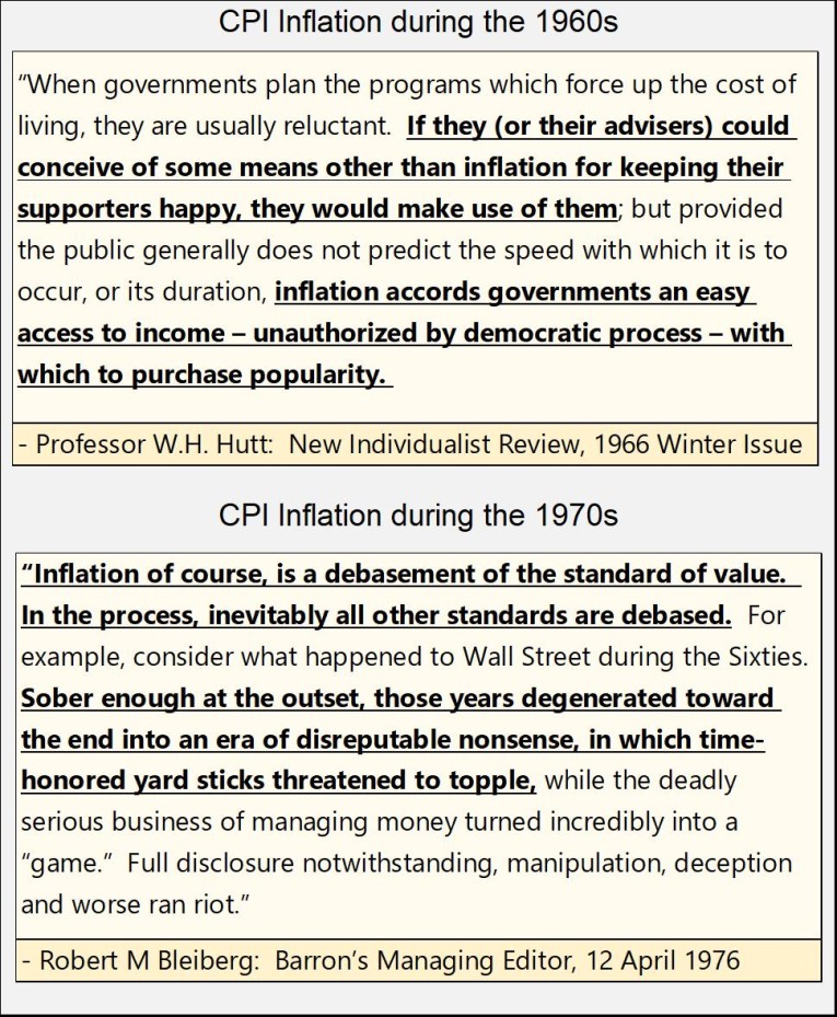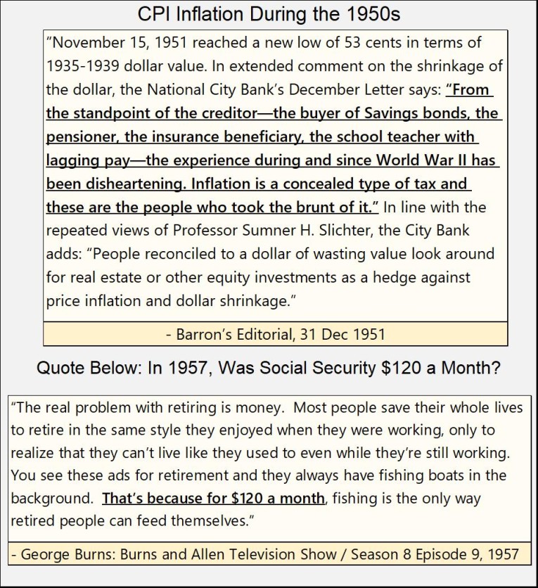 When the inflation flowing from the Federal Reserve flows into commodity prices, it’s called CPI inflation. Largely forgotten today, the 1950s, as was the 1960s, were decades of CPI inflation.