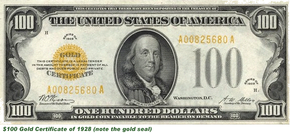 The U.S. Treasury notes of 1928 launched the general design that most people in the world immediately recognize as U.S. paper money (prior to the Federal Reserve’s recent introduction of BIG FACE money).