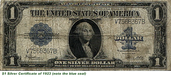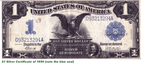 One thing I like about the "fine print" of the gold certificates and the first two of the silver certificates is that they promise the bearer One Hundred Dollars In Gold Coin, or One Silver Dollar. It is therefore clear that the purpose of this paper money was merely to reduce the cost of using gold or silver coins in transactions, not to increase the money supply.