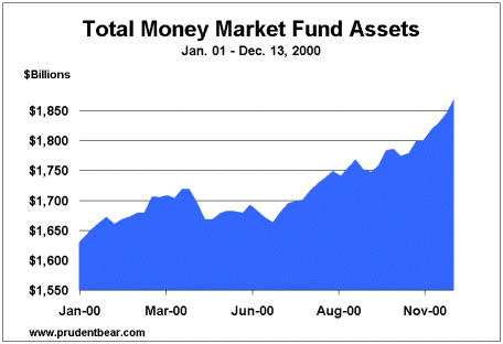 Wall Street and the Fed have one key advantage not enjoyed by John Law. Most alternative vehicles (gold, foreign currencies, other stores of value) outside of the Great U.S. Financial Bubble remain in general disrepute, so Law’s efforts to devalue alternative vehicles are seemingly not as critical. Today, the “alternative” to stocks is, most conveniently for Wall Street, the money market fund they manage. One cannot overstate how the money market has developed into a central mechanism for the Great Financial Bubble. However, this is not sound money, but a “New Age” monetary scheme. This precarious monetary regime is backed by inflated asset values and is acutely dependent on constant and massive liquidity creation to sustain levitated asset prices. The asset bubble requires enormous money creation, while money creation in this scheme requires rising asset prices. An accident waiting to happen…