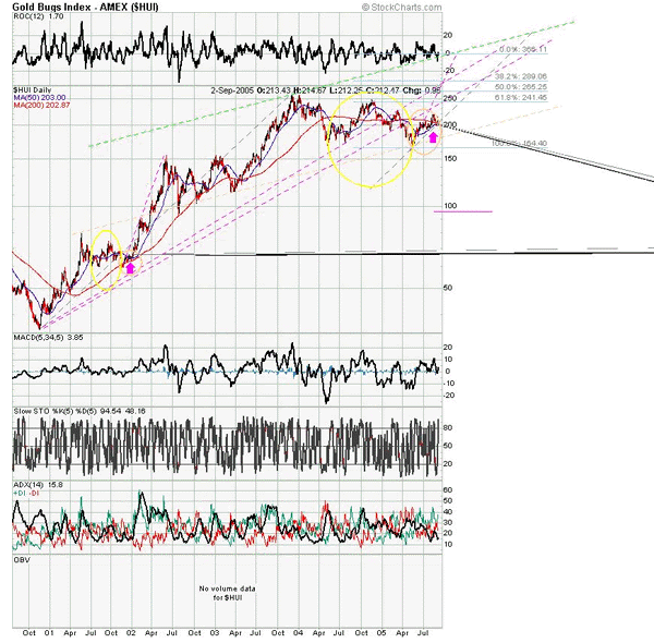In our first couple of editorials we discussed the HUI index and Silver. It seems that the fractal relationship shown in the first HUI editorial continues to play out. I believe we will see a rather vertical move over the next couple of weeks to approximately the 240ish area. After that, a series of vertical moves might take us to 280ish, and 365ish. At least I have seen nothing that might suggest a change of expectations.