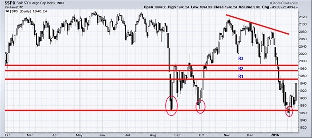 The stocks markets worldwide last week rocked back and forth every day until January 29, 2016. That Friday the SPX rallied very sharply. So, with its biggest weekly gains of the year, does this mean the bull market in equities is back? No!
