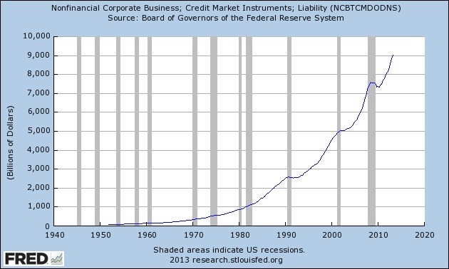 Corporate bond issues have risen to a record $6.1 trillion as of the second quarter of 2013, according to Federal Reserve statistics. This translates to an increase of $625 billion year over year. Moreover, as Yardeni points out, corporations are likely using some of their bond sale proceeds to repurchase shares of their companies, which artificially inflates earnings per share. “That’s a bubble-like development if stock prices are getting a significant lift from debt-financed share buybacks rather than actual earnings growth,” Yardeni wrote.