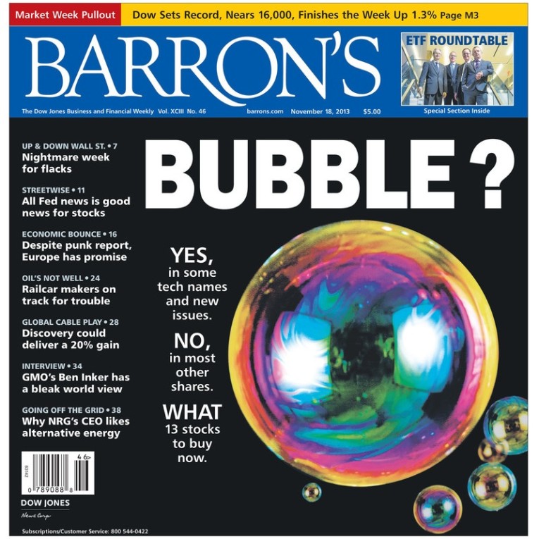 But short sellers beware: we’re not there yet. The bubble vigilantes are out in full force which suggests a full-fledged financial market bubble hasn’t fully developed. On the front cover of the latest issue of Barron’s, the editors ask the question of whether or not equities are in a bubble. Their answer: “Yes, in some tech names and new issues” and “No, in most other shares.” The Barron’s cover very much underscores the heightened sensitivity to developing bubbles, which in turn keeps investor sentiment from becoming too ebullient before the final melt-up stage of the bull market.