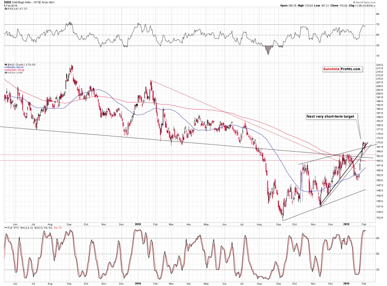 The reversal that we have right now doesn’t tell us anything new. We already know that we might see a quick pop-up higher (and that’s exactly what happened), perhaps due to USD’s short-term decline (again, exactly what happened). But, the reversal at the end of the month (or early in February) emphasizes how important this date is. All key parts of the precious metals market and also the USD Index suggest that something major will happen in about 3 weeks. This is confirmed by total of 8 reversal signals (3 in USDX, 2 in gold, 2 in silver, and 1 in gold stocks).