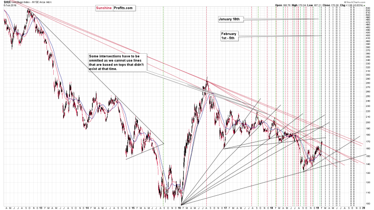 In case of gold stocks, we have one reversal right about now and – unsurprisingly – one coming at the end of January or in early February. Then there are a few extra reversals, but there is also one due in late June, just like in silver and gold.