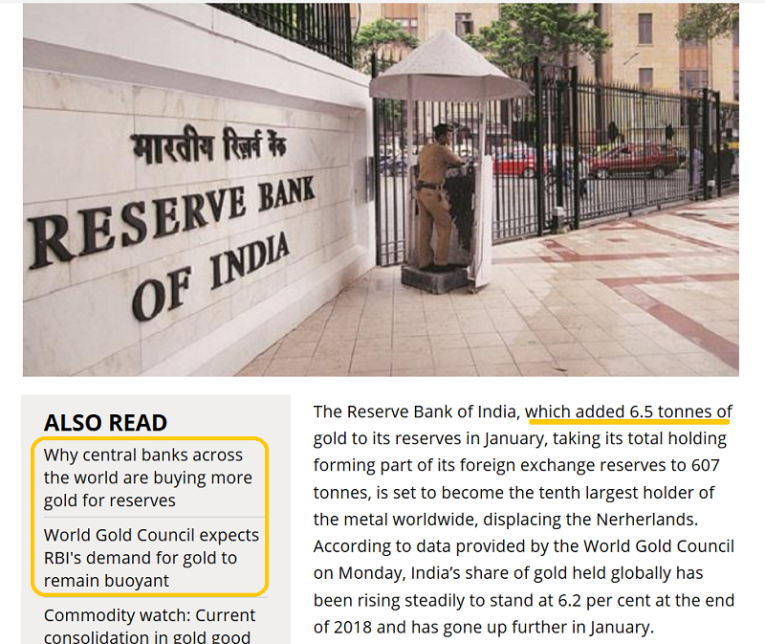 China’s central bank has resumed its monthly gold buying, and now India’s central bank seems to be buying consistently too!