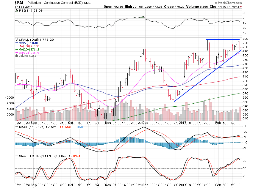 Platinum slid 0.56% but is setting up to continue higher. The 200-day moving average is a theme this week, which is always is a critical level when price is either above, or below.