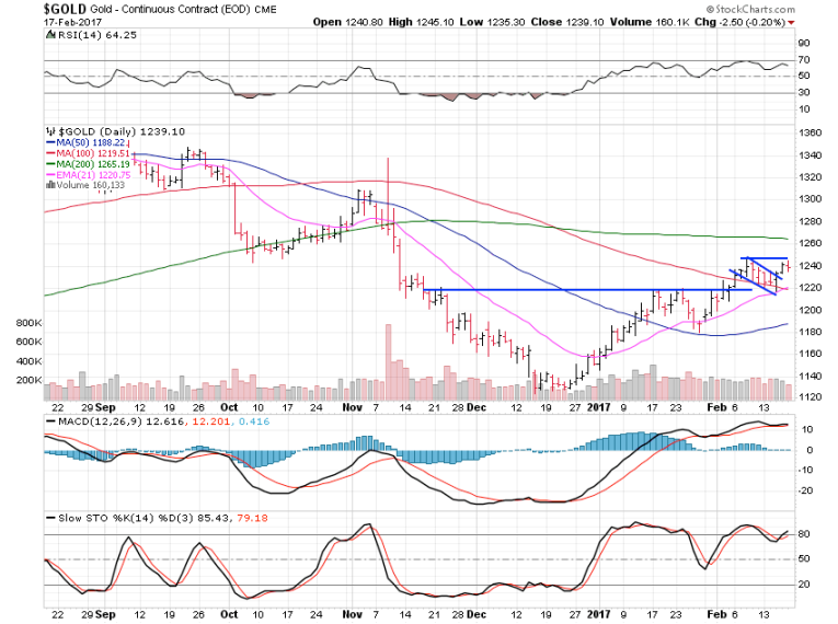 Although we may need another couple or few weeks to setup for the move up to $1,300 resistance, gold is looking good.